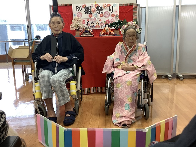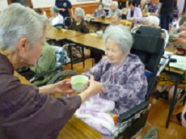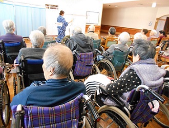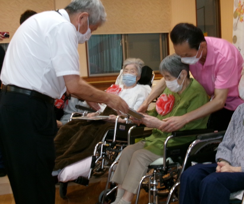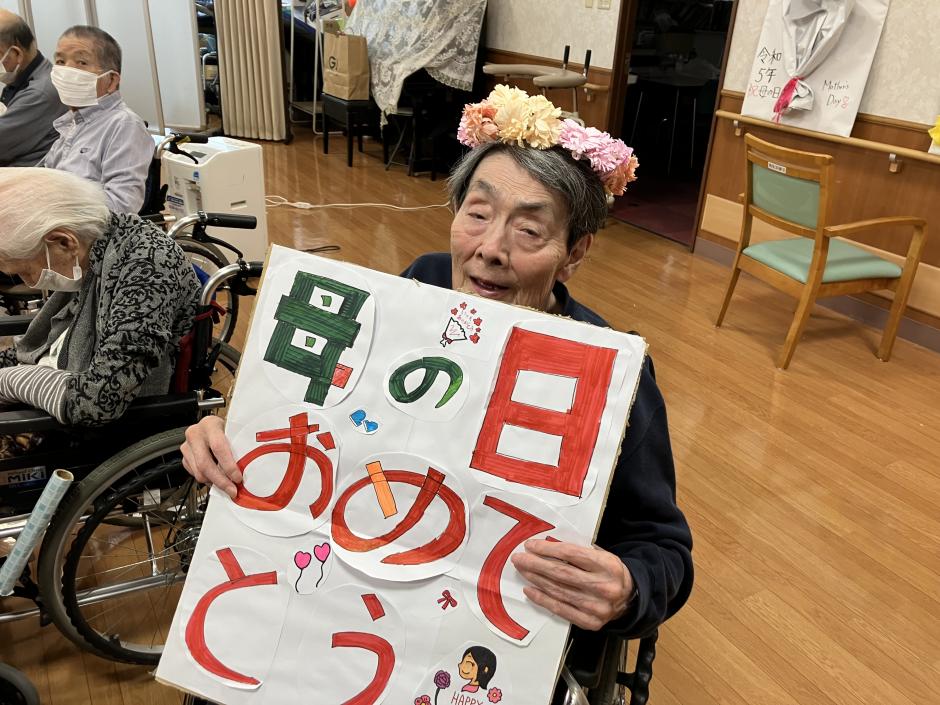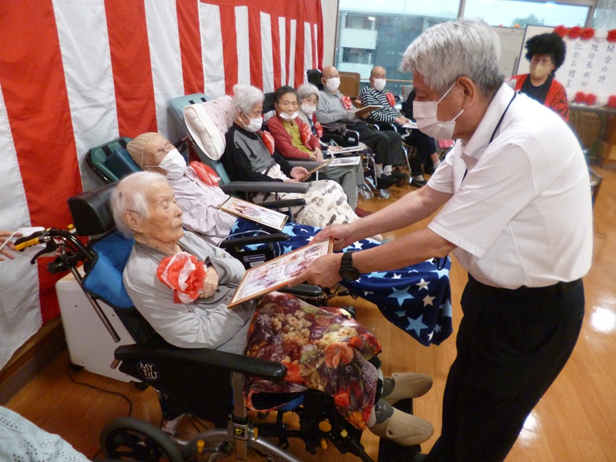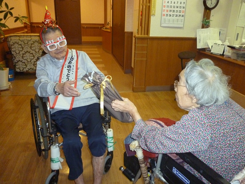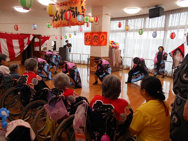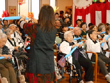 「入居者様も職員もみんなで楽しむ」をテーマに、前半は式典で皆さまの健康に感謝とお祝いを、後半は職員の余興で楽しんでいただきました。