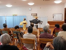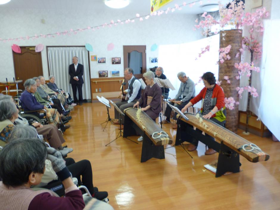 柳内藝術音楽院の皆様にご準備いただいたお茶や和菓子をいただきながら、琴や三味線、尺八等を披露していただき、ご利用者様および職員一同、楽しいひと時を過ごしました。