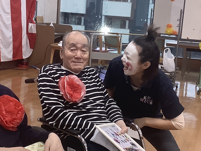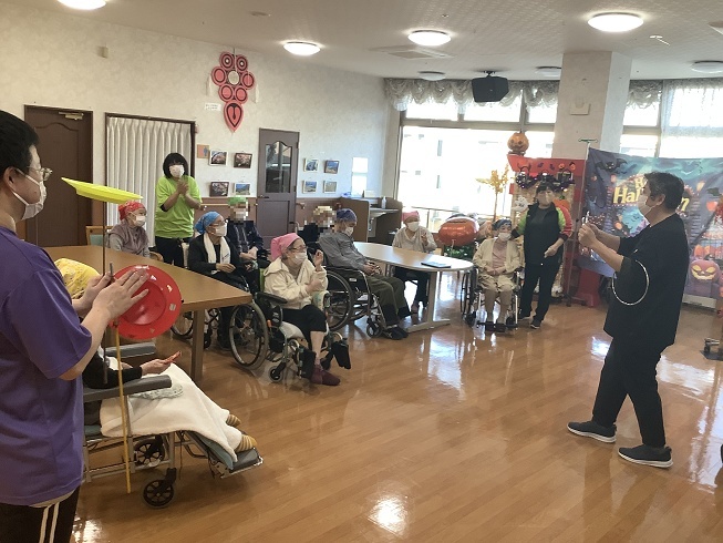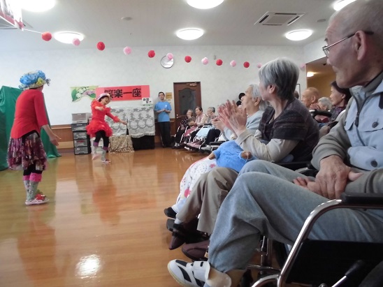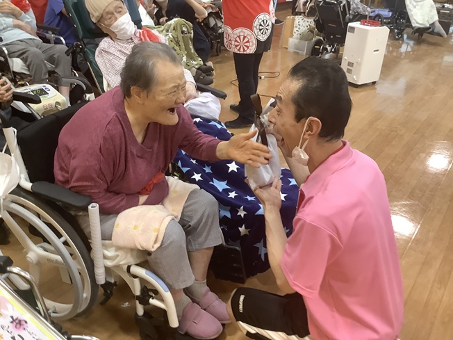 会場は笑いと拍手に包まれ、入居者様も大笑いのひとときとなりました。