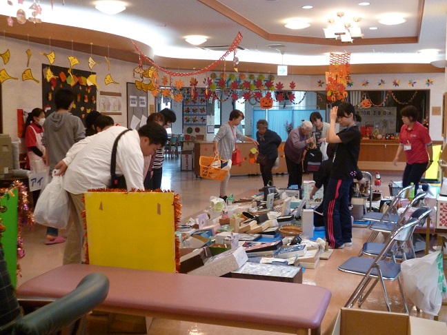 秋祭りとしましては初めての取り組みとして、『災害復興支援バザー』を同時開催いたしましたが、職員はじめご家族様などにも大変ご協力をいただき、たくさんの品物が並んだバザー会場は大変な盛り上がりとなりました。