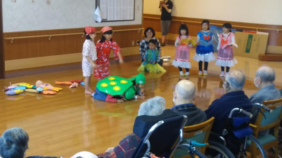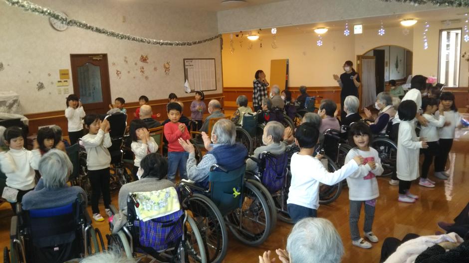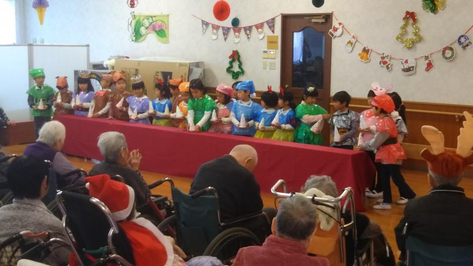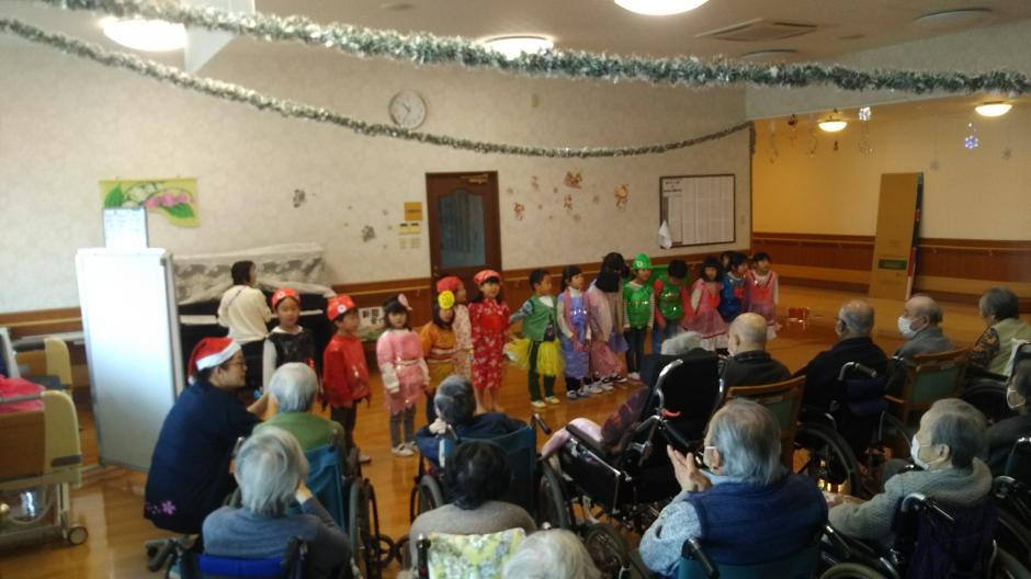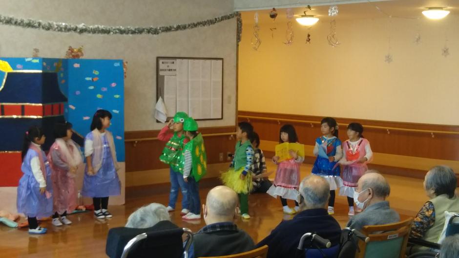 園児によるハンドベルの演奏や劇が披露され、利用者様は皆様大変喜ばれておりました。