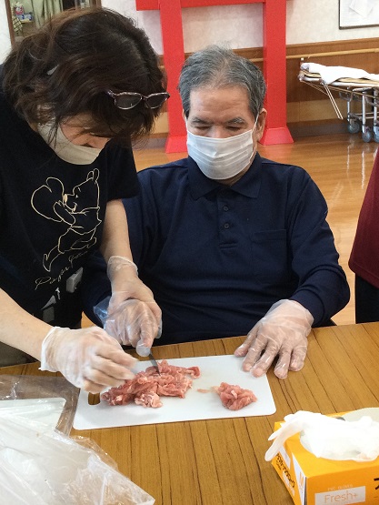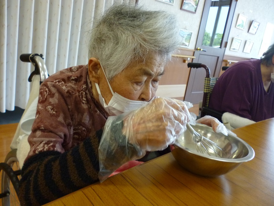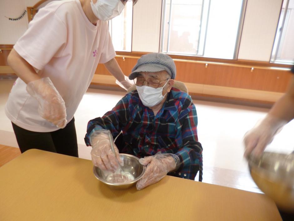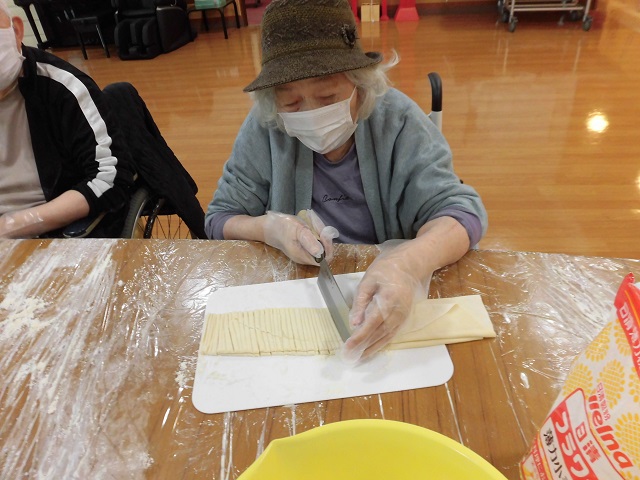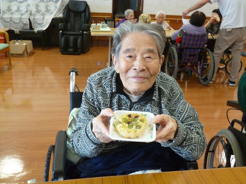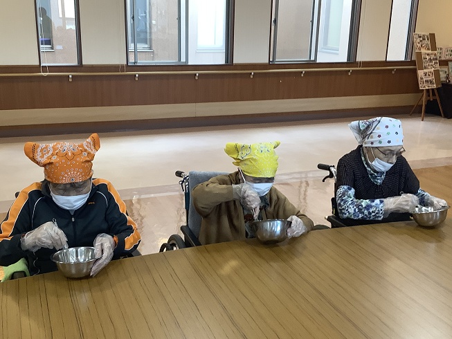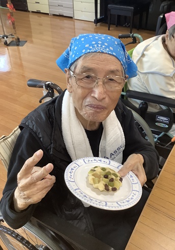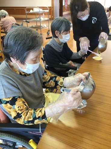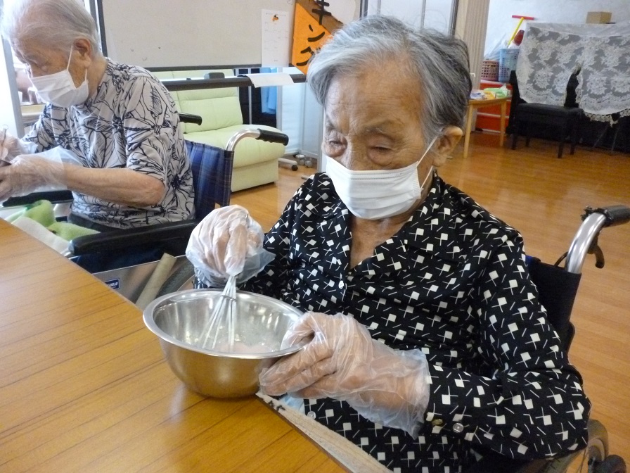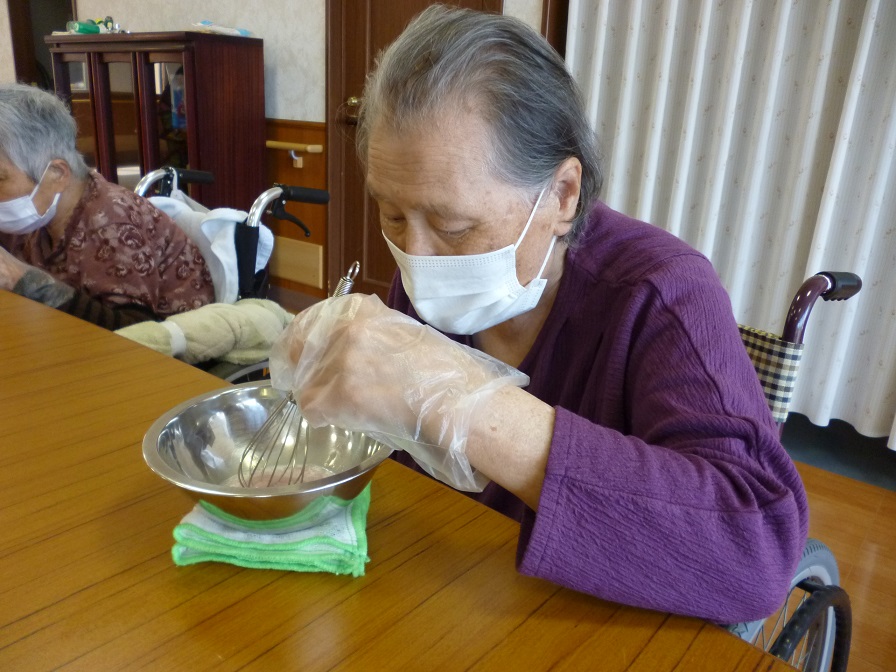 食材のカットから、焼き上がりまで全て手作業で行いました。主婦をされていた皆様はさすがの手さばきで作業されており、職員も大変勉強になりました<(_ _)> 男性のご利用者様も負けていませんでしたよ(^^)