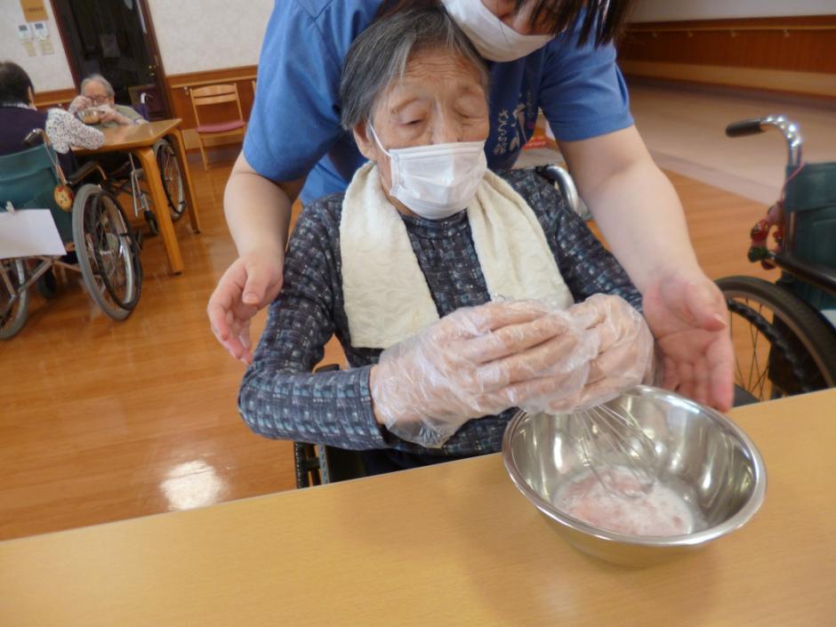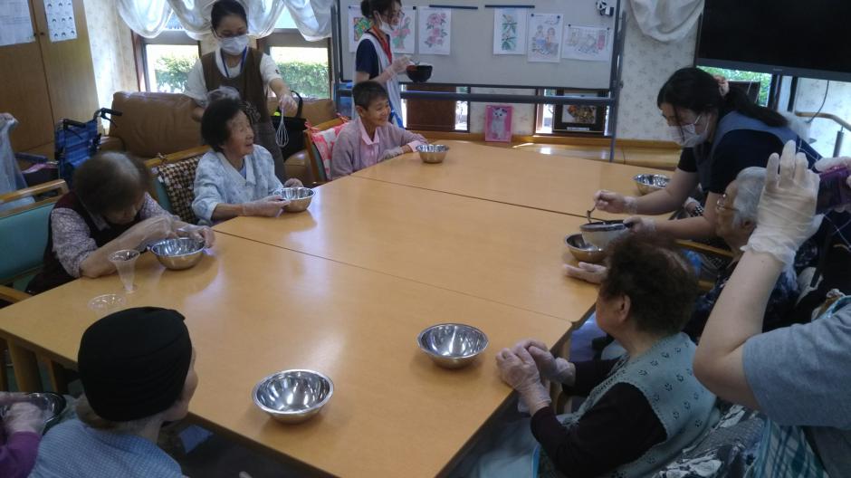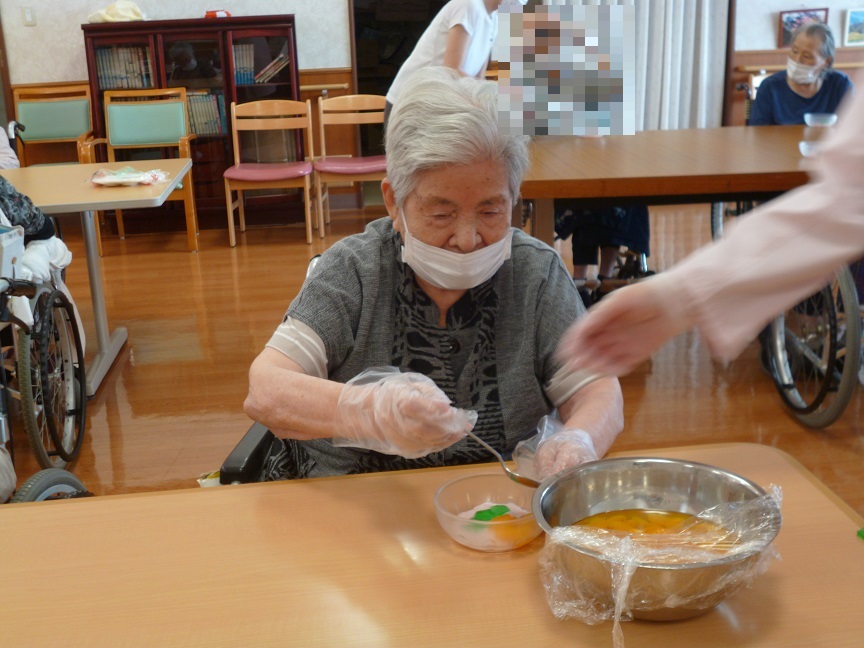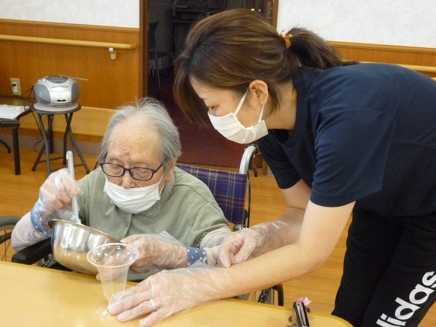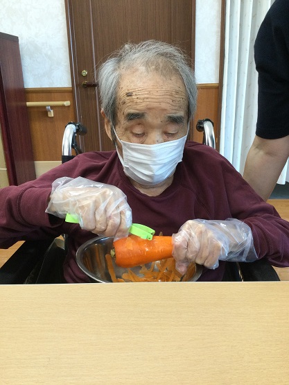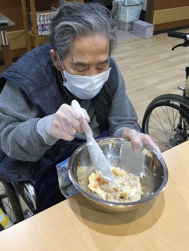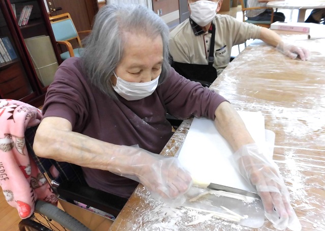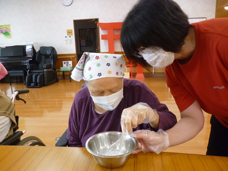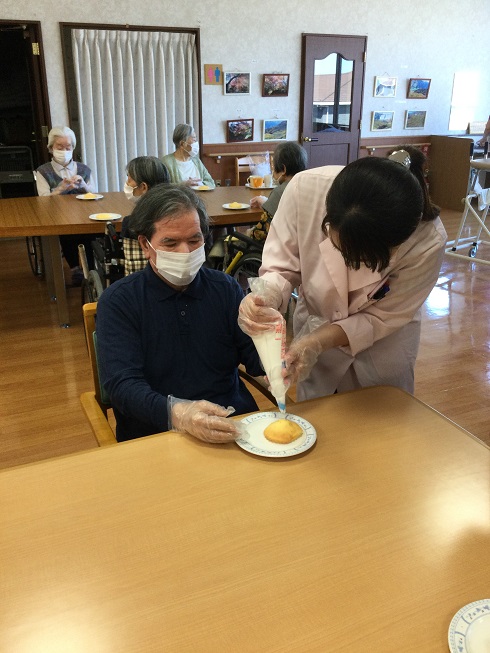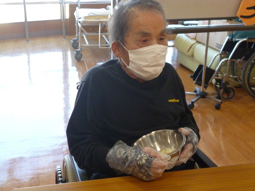 食材のカットから、焼き上がりまで全て手作業で行いました。主婦をされていた皆様はさすがの手さばきで作業されており、職員も大変勉強になりました<(_ _)> 男性のご利用者様も負けていませんでしたよ(^^)