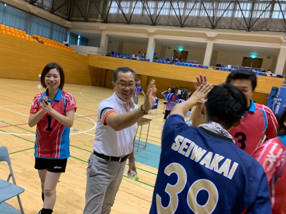 予選突破の勢いをそのままに、一回戦を2セット先取で突破し、ベスト4をかけた「愛宕園」さんとの決戦。1セットを先取されましたが、2セット目を取り返し、白熱したラリーは最終セットまでもつれこみましたが惜しくも敗退となりました。しかし、これまでの最高成績のベスト8という結果は、必ず来年につながるかと思います。