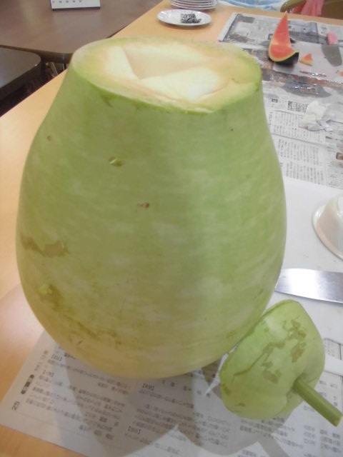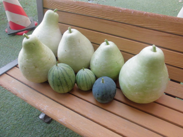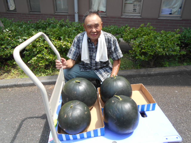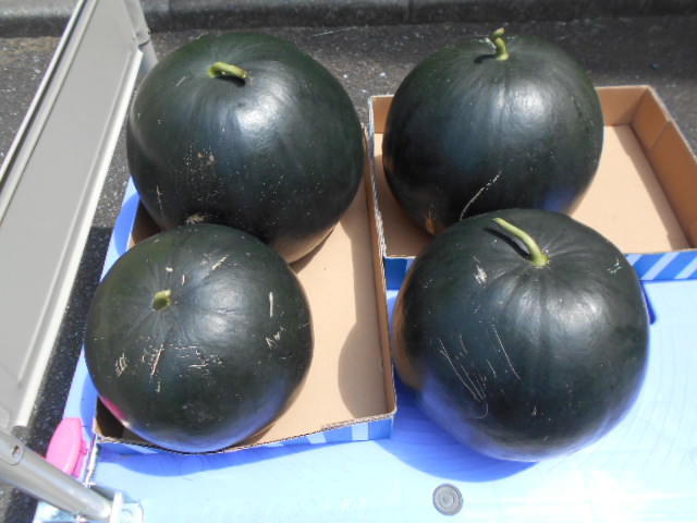 生育不足で白いスイカもありましたが大玉スイカは成功し、おいしくいただきました。