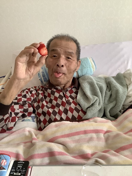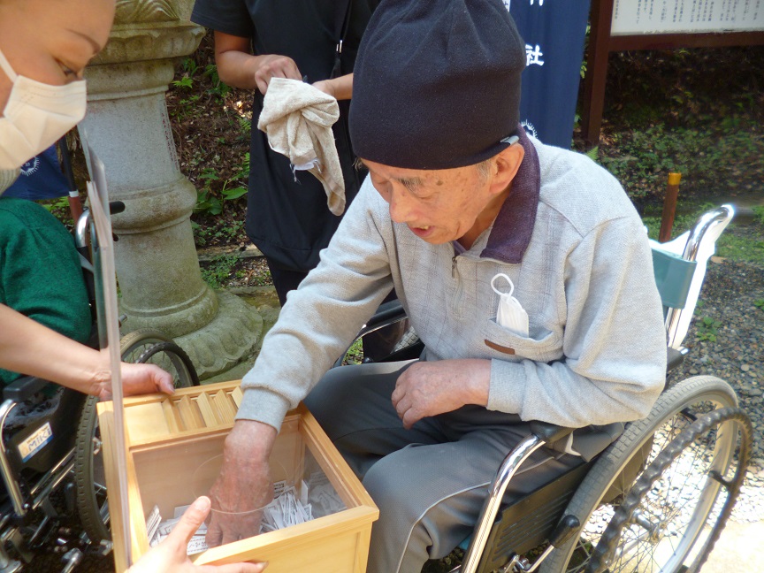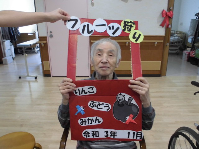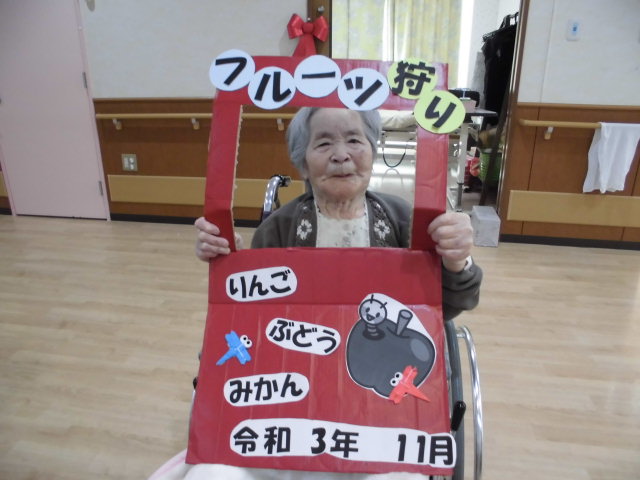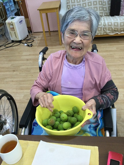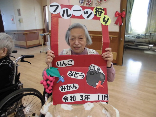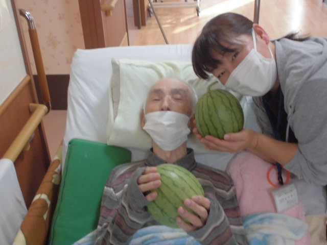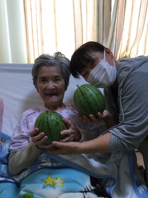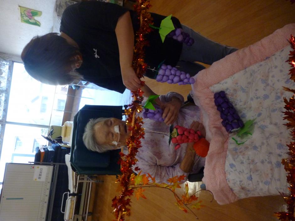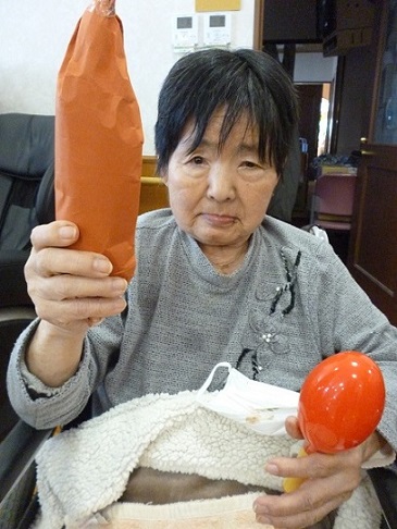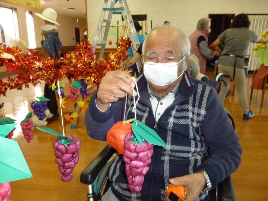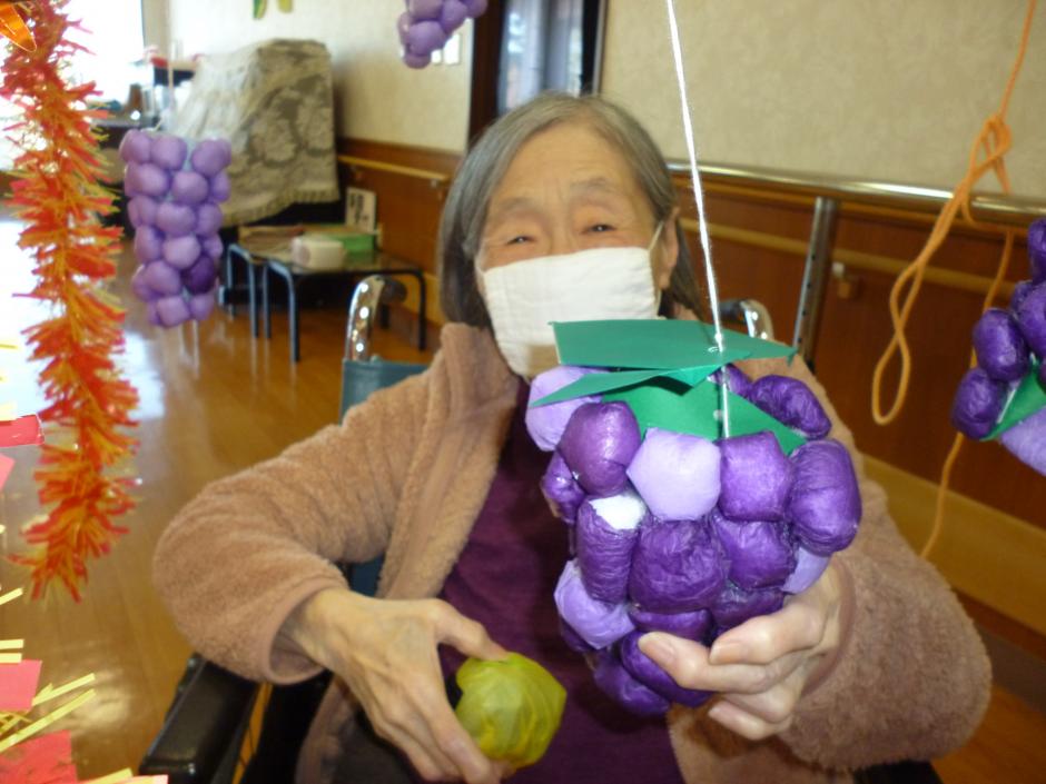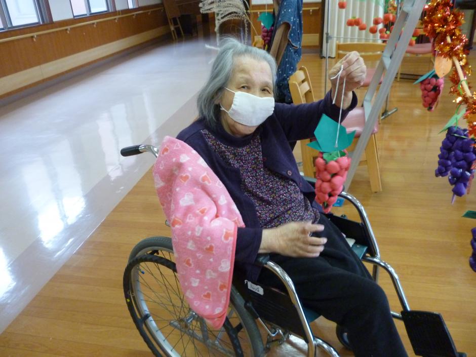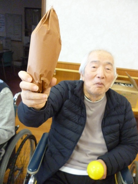 ユニットへのお土産を選ぶ際には、どの房にしようか真剣に見定め、車椅子からしっかり立ち上がって、立派なお土産を無事にゲットすることができました。