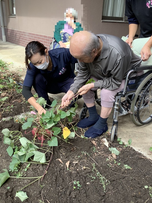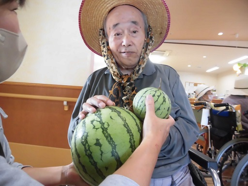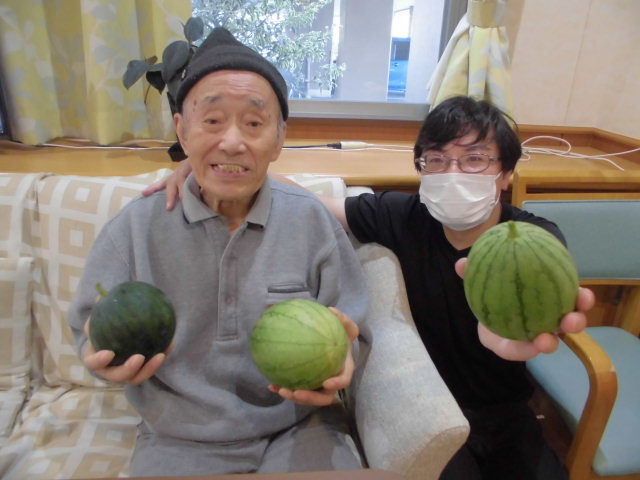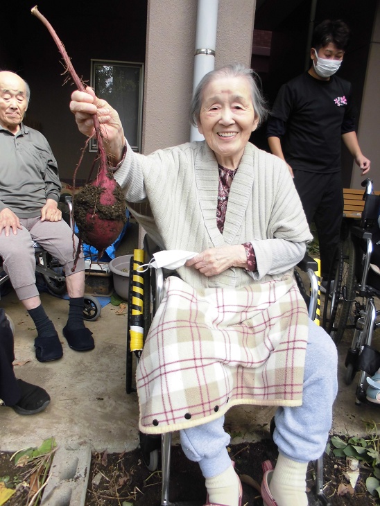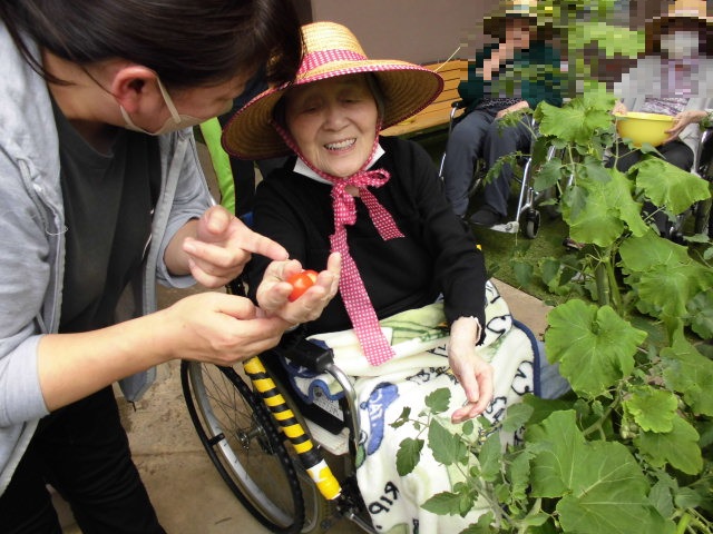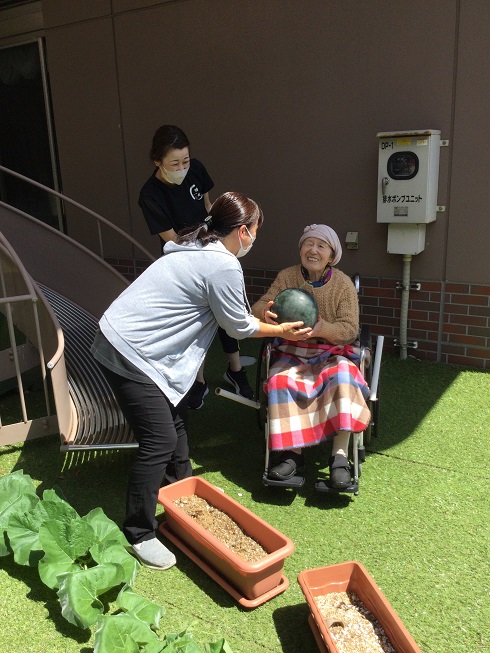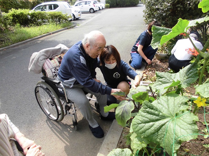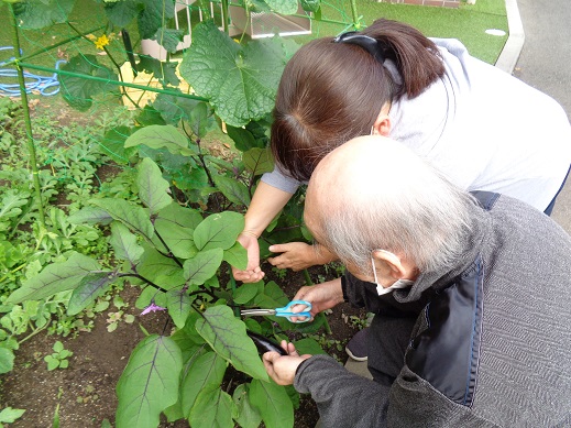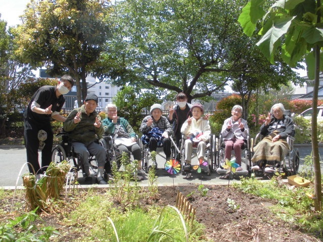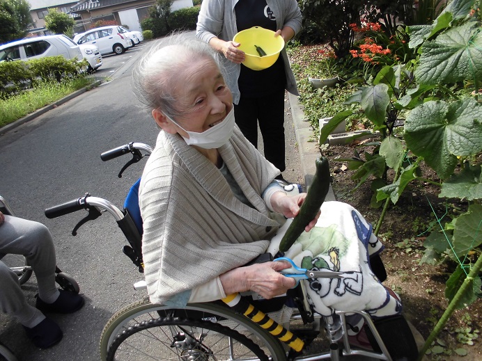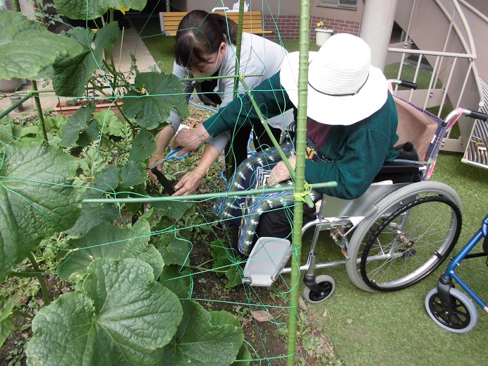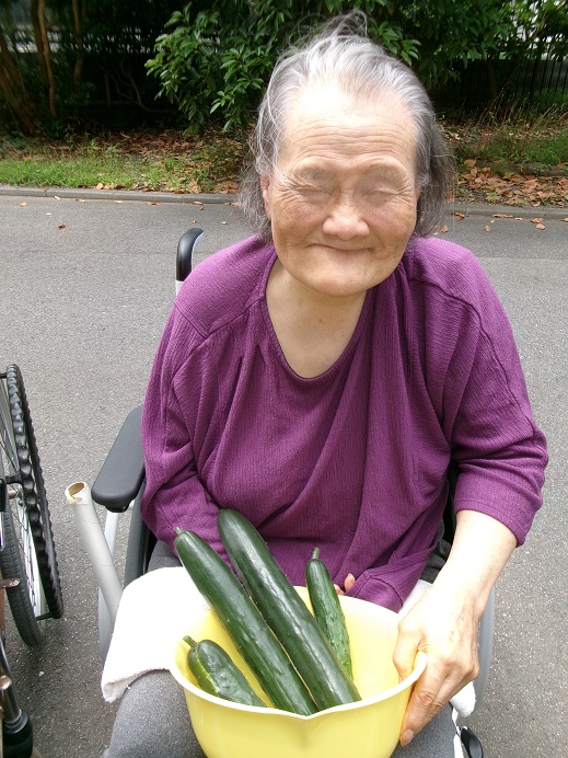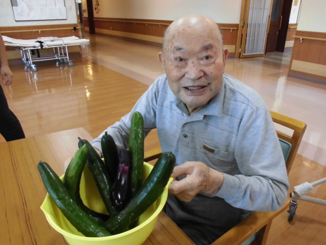 梅雨が明け、野菜の急成長に驚きと喜びで入居者様も活き活きしています。
