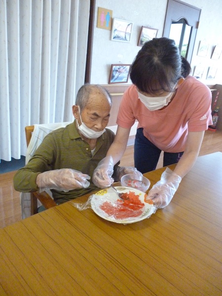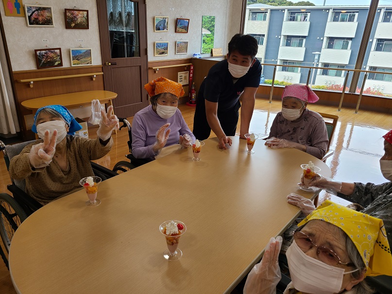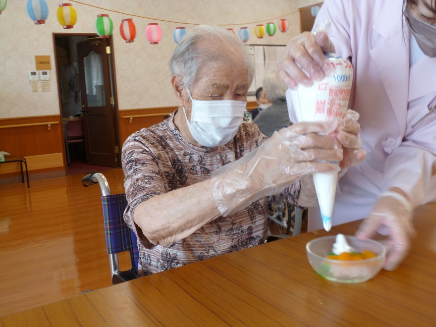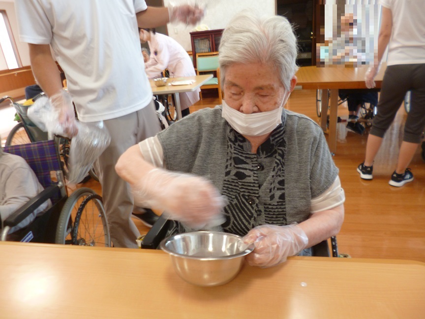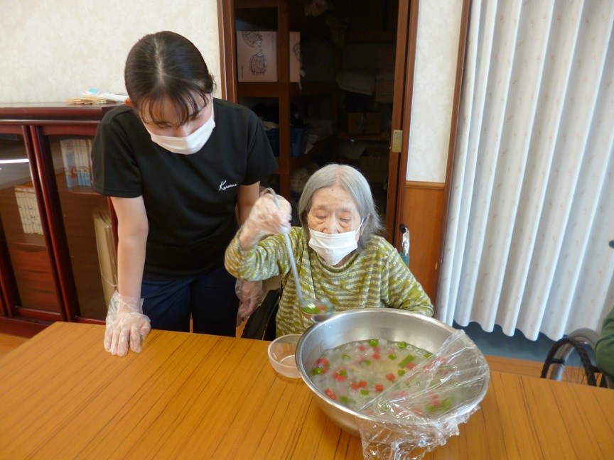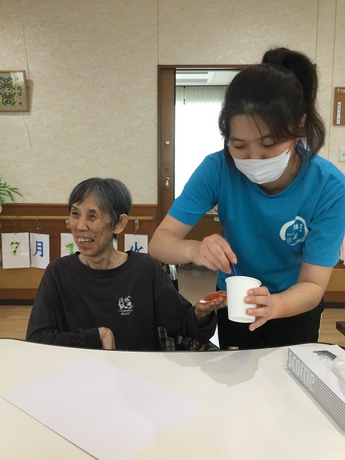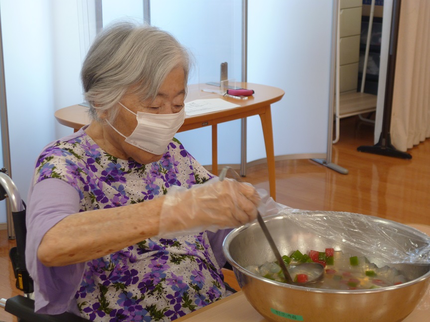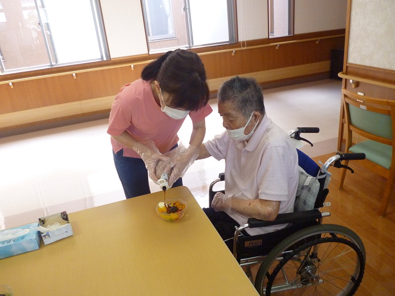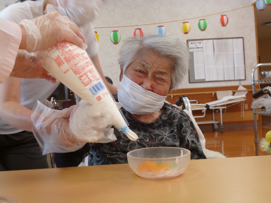 各ユニットでは、涼を求めてフルーツポンチやあんみつ、かき氷作り、七夕では思い思いに短冊に願い事を、ひんやり手形アートなど、それぞれ工夫を凝らして暑い夏を乗り切ります!