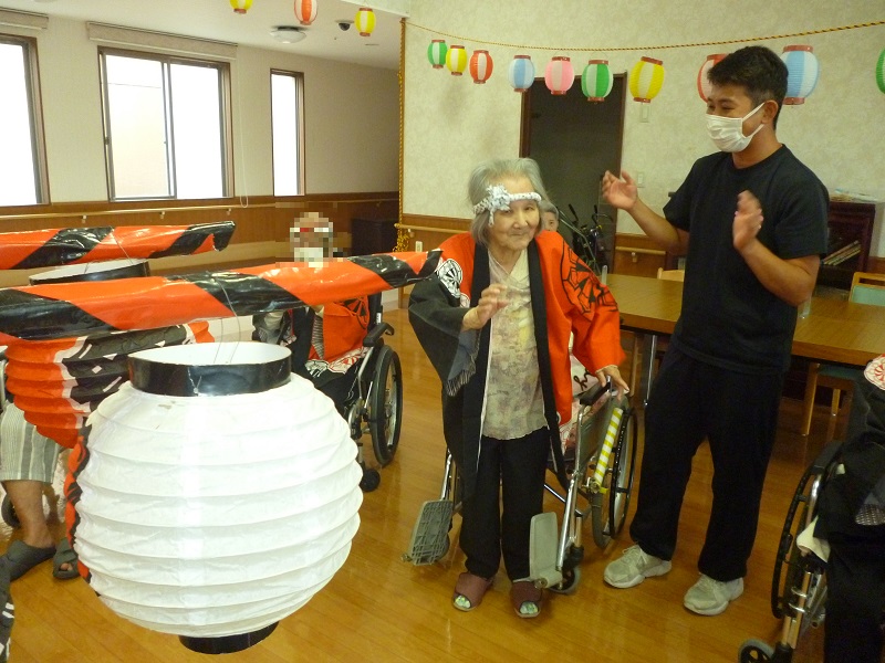 法被姿の利用者様が、ご家族様とともに出店や催しを楽しんでおられました。
