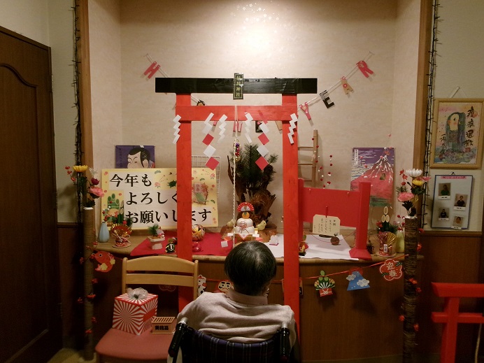 早速ですが、施設内では恒例の『あゆかわ神社』を建立し、皆様に初詣をしていただいております。皆様にとって素晴らしい年となりますことをお祈りいたします。