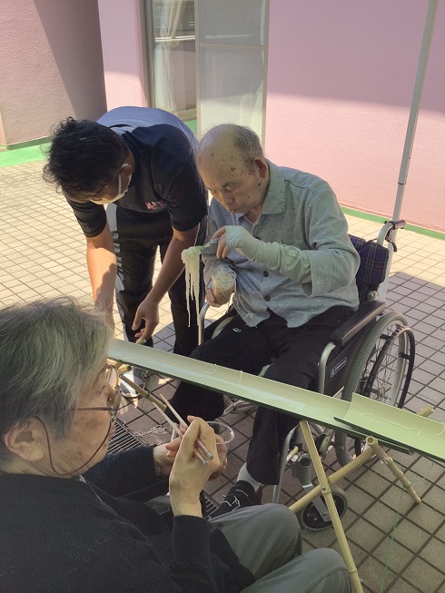 普段は食が細い方も、普段は職員のお手伝いが必要な方も、この時ばかりは俄然張り切ってご自分で麺を上手にすくい、沢山召し上がってくれます。