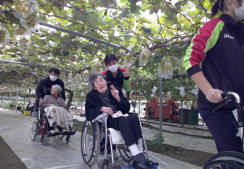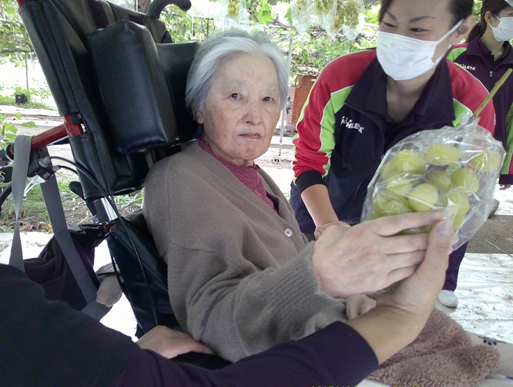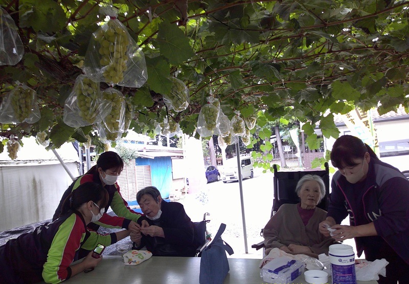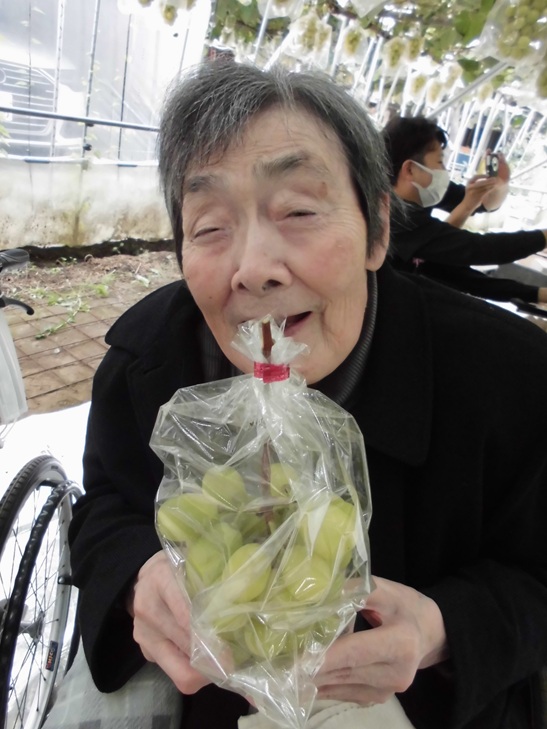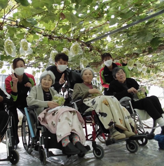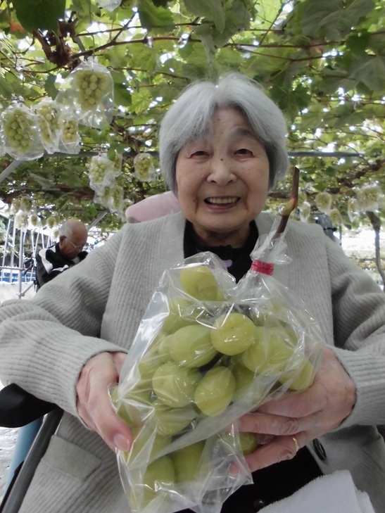 10月に入り過ごしやすい季節になりましたので、ご家族様もお誘いし、常陸太田のぶどう園へ出かけてきました。「私は30粒食べる!」と張り切って出発!道中もワクワクした様子で、とても賑やかでした♪