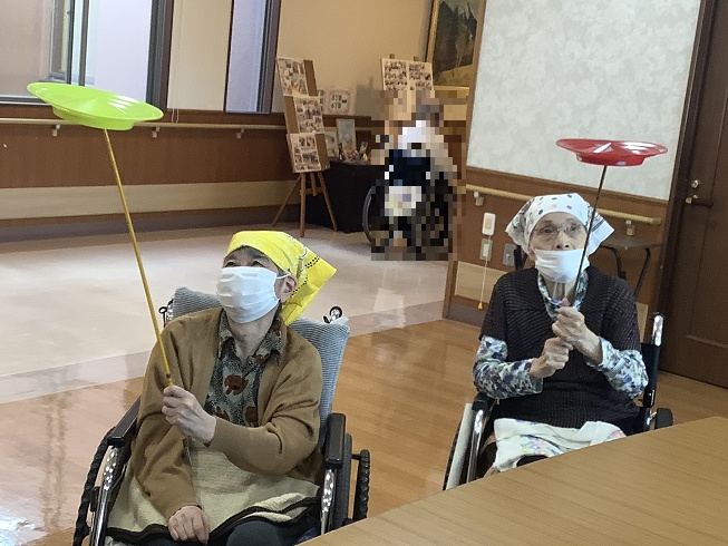 「できるかな〜!?」と皿回しに挑戦され、あちこちでマジシャンが誕生しました♪