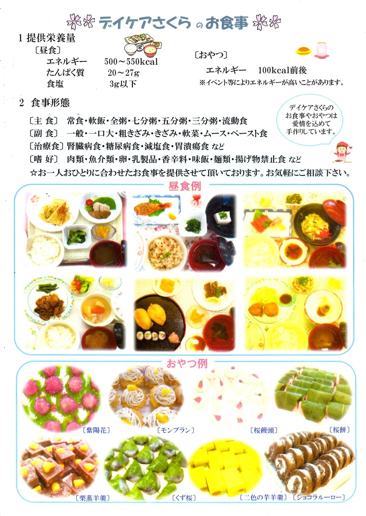 デイケアさくらのお食事は愛情をこめて手作りしています。