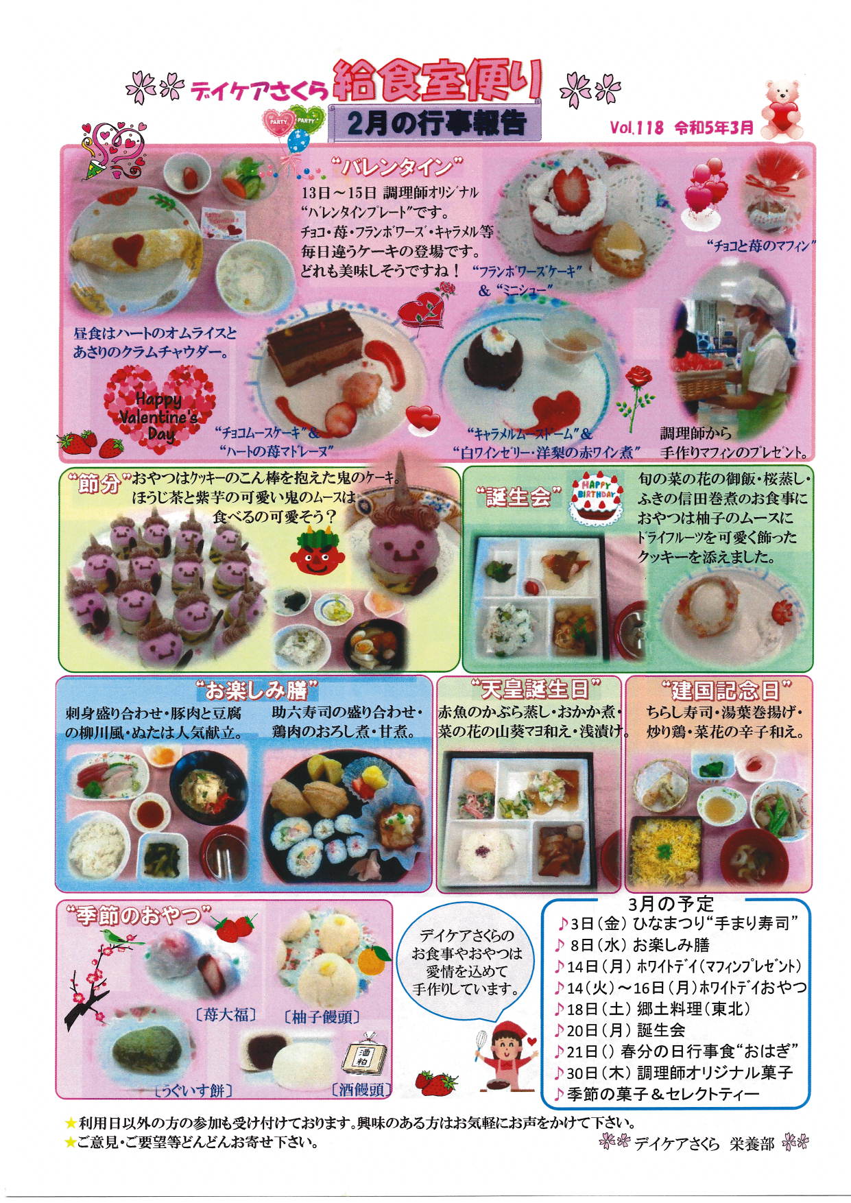 R5年3月 月間予定表・給食室便り