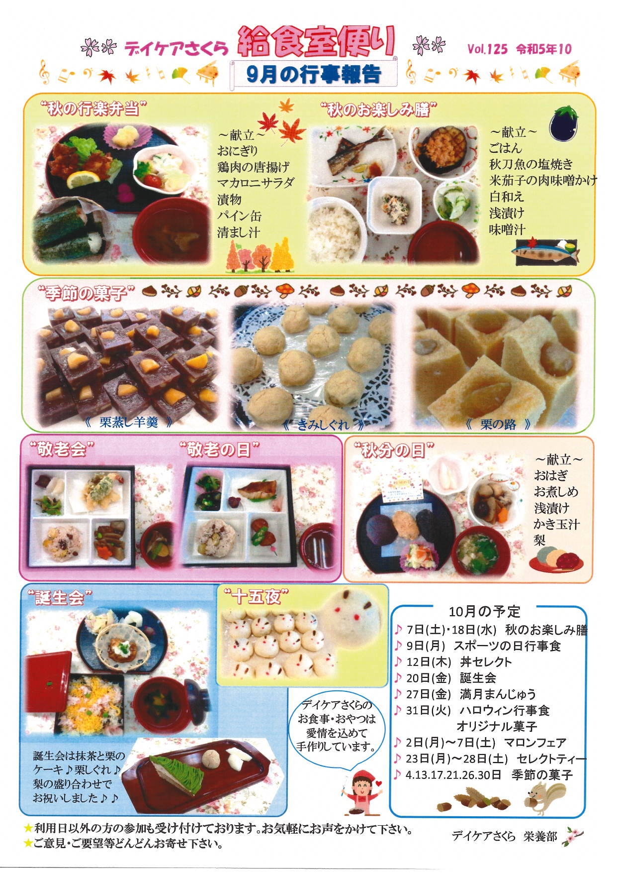 R5年10月 月間予定表・給食室便り