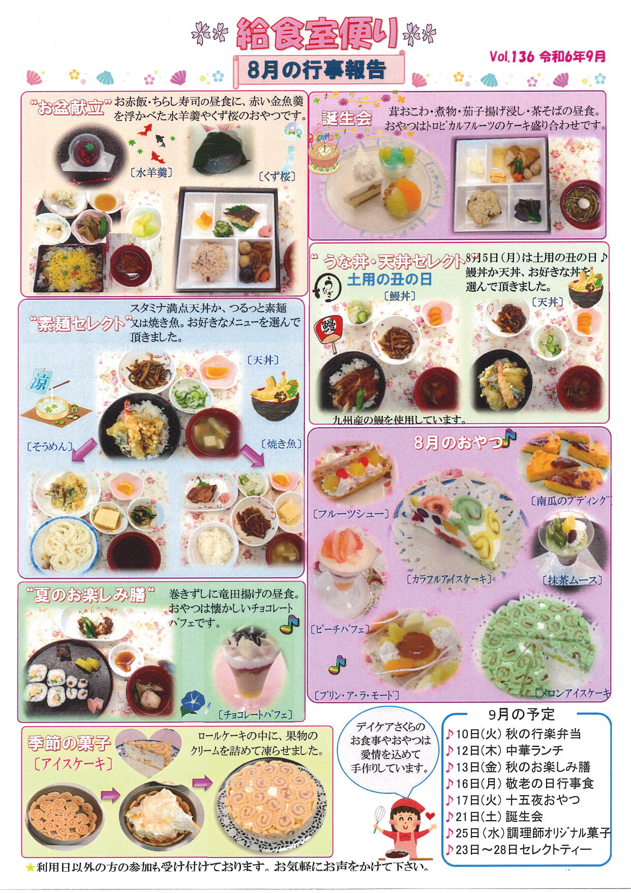 R6年9月 月間予定表・給食室便り