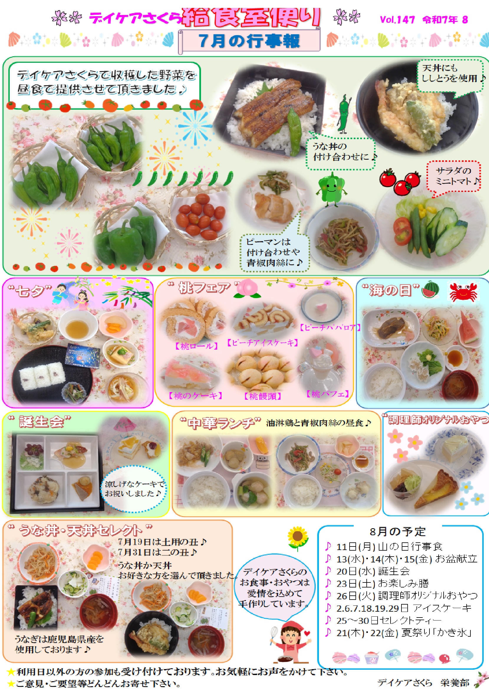 R7年8月 月間予定表・給食室便り