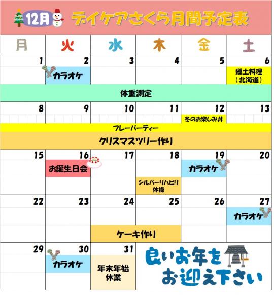 R7年12月 月間予定表・給食室便り