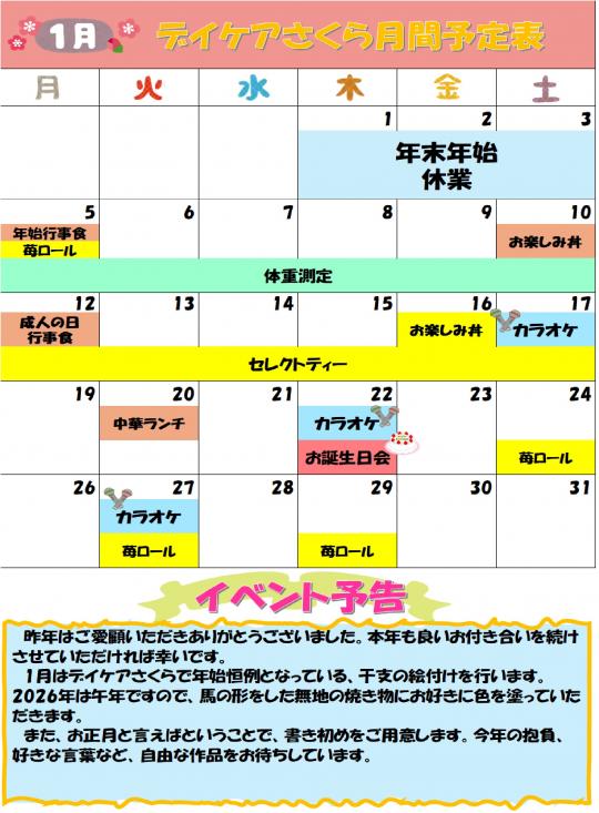 R8年1月 月間予定表・給食室便り