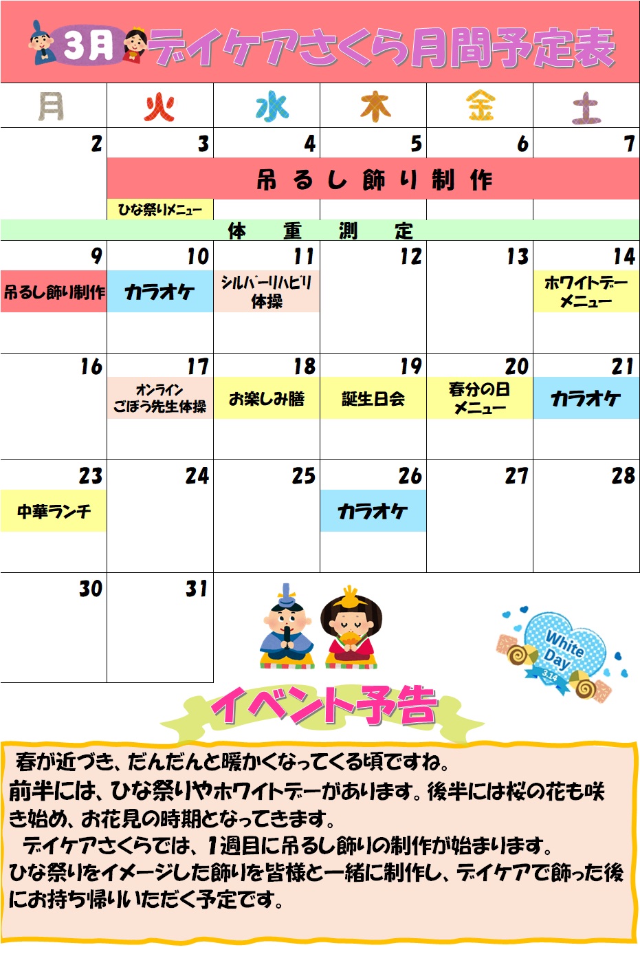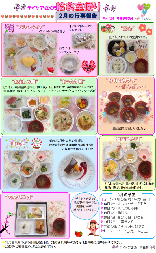 R8年3月 月間予定表・給食室便り