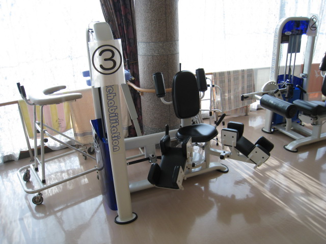 広々としたリハビリ室では、理学療法士(PT)、作業療法士(OT)がご利用者様のニーズに合わせたリハビリを提供。転倒の予防や体力低下の予防に効果があるマシンリハビリも行っております。
