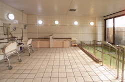 ご利用者の状態に合わせて一般浴または寝たまま入れる機械浴のどちらかをご利用頂けます。りんご、みかんなどを入れた「お楽しみ入浴」も行っております。