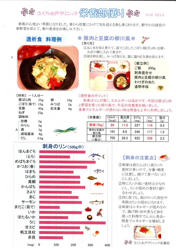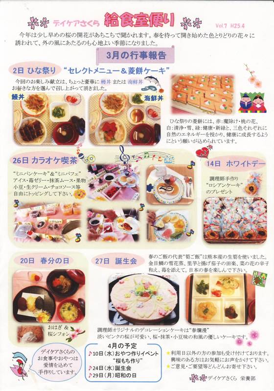 【デイケアさくら給食室便り】【さくら水戸クリニック栄養部便り】H25.4月
