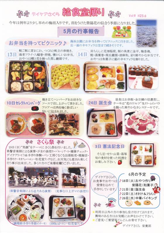 【デイケアさくら給食室便り】【さくら水戸クリニック栄養部便り】H25.6月