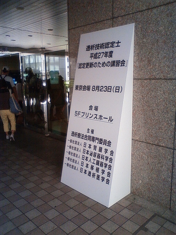 8月23日、品川プリンスホテルにおいて、『透析技術認定士 認定更新のための講習会』が開催され、当院より二階堂、藤来、野口(み)が参加しました。