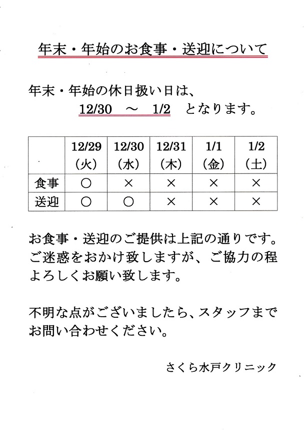 このお知らせは12/21〜12/26の間に患者さまへお配りいたしました。 画像をクリックすると拡大します。