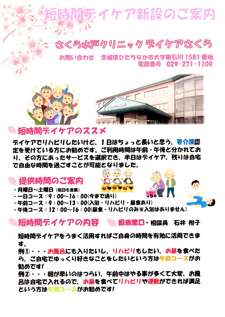 さくら水戸クリニック・デイケアさくらでは、