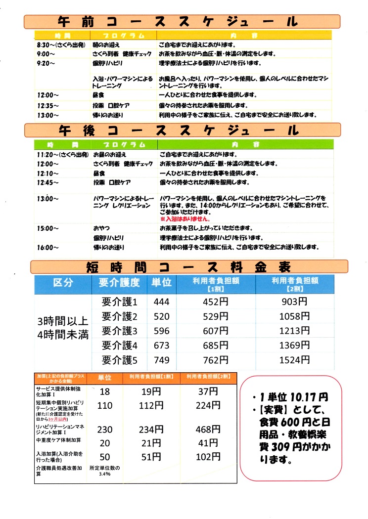 画像①:短時間デイケアのご案内