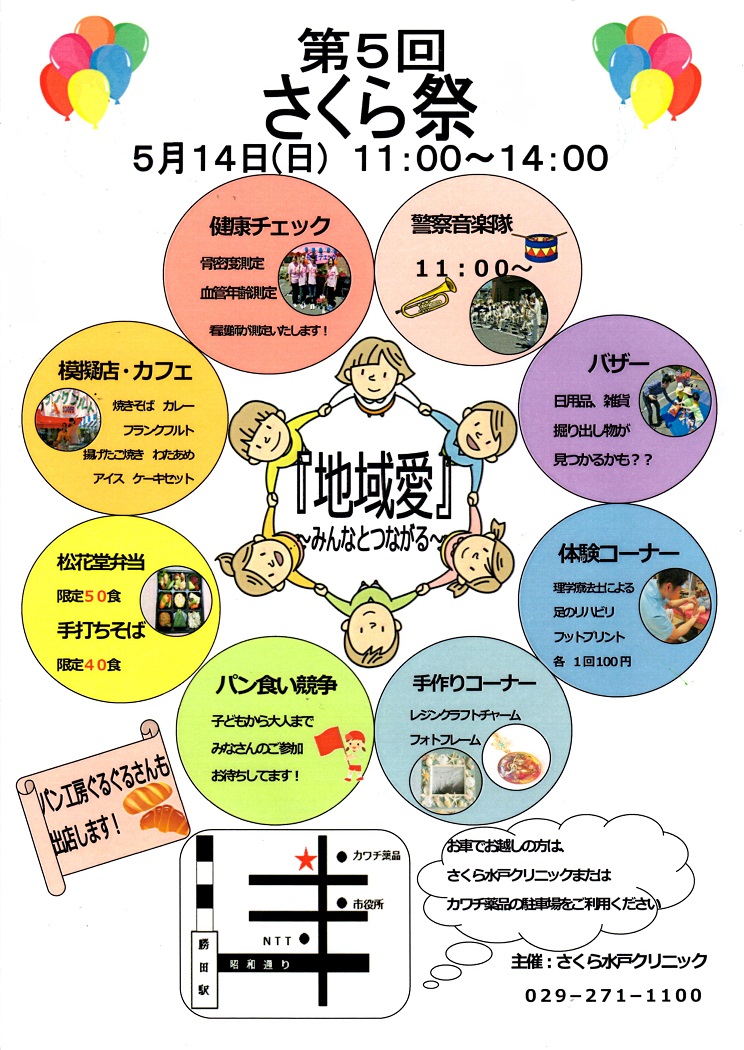 さくら水戸クリニックにて、看護の日&健康イベントとして、さくら祭りが開催されます。