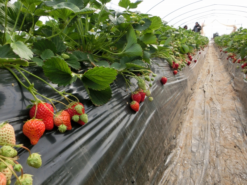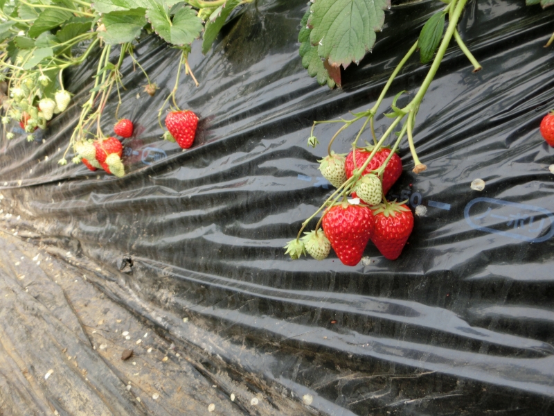 ここでは広大な畑のビニールハウスに沢山のイチゴが実っており、時間無制限で満足いくまで食べ放題となっています。今回食べてきたものは「ラブソング」という品種。