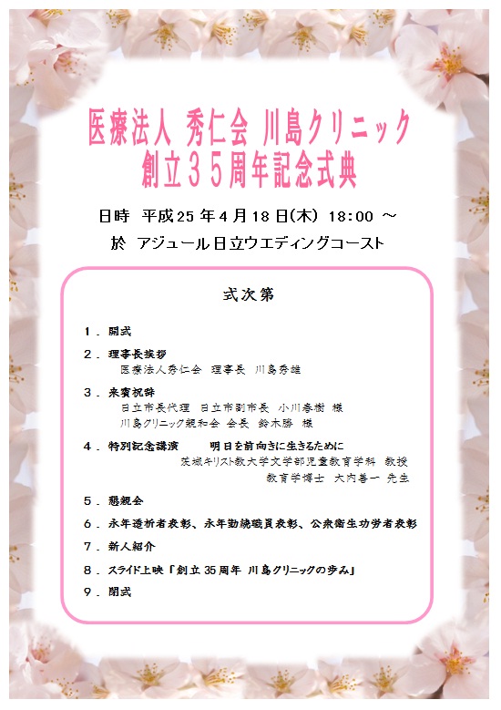 平成25年4月17日をもって、当院は晴れて創立35周年を迎える事が出来ました