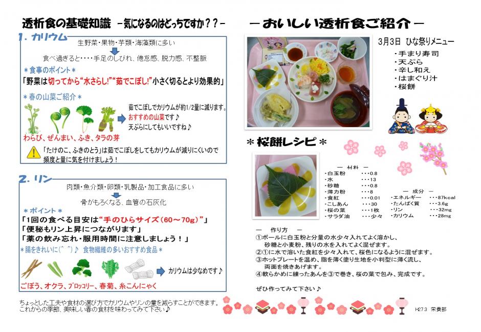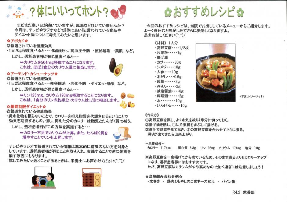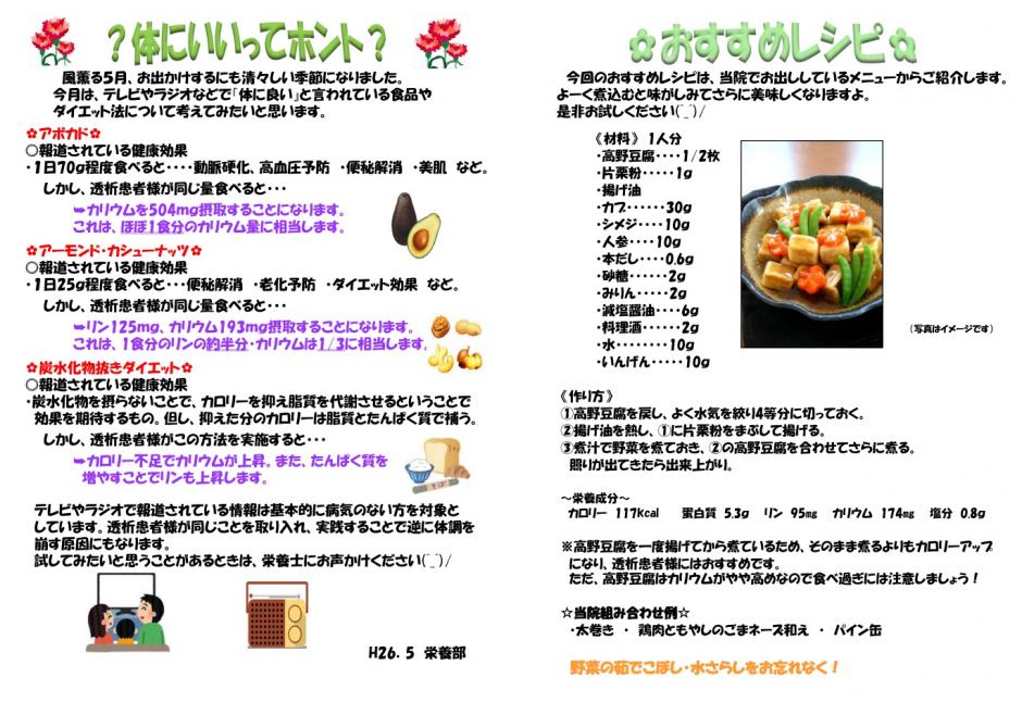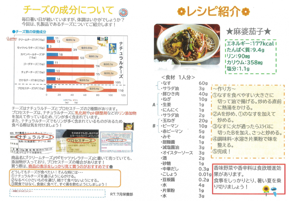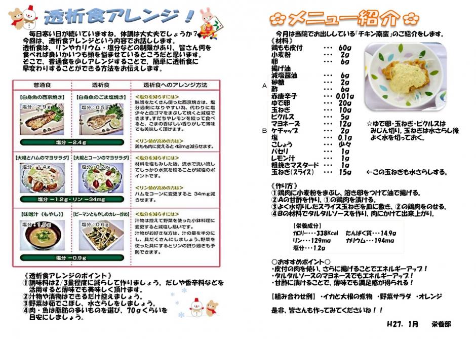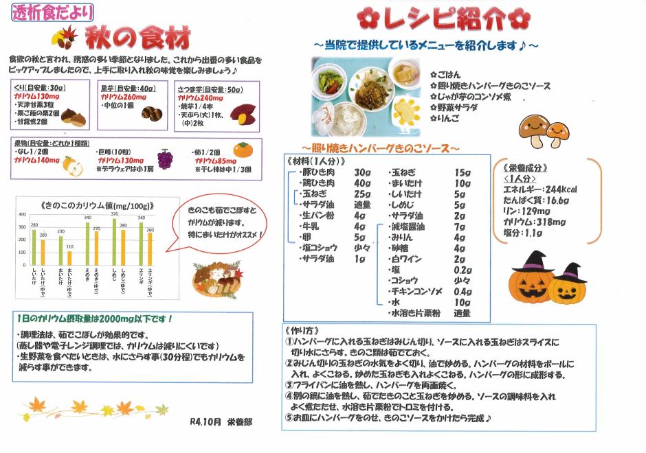 こちらのページでは当院の栄養部(管理栄養士)より、透析患者様に合わせた透析食のレシピや