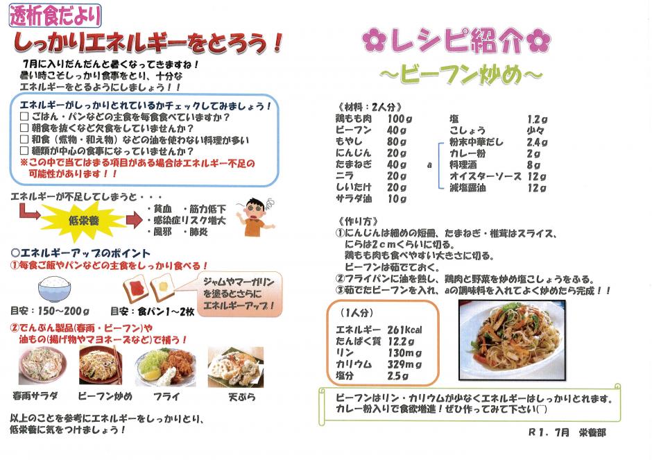 R1.7月 しっかりエネルギーをとろう!