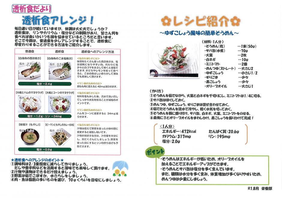 R1.8月 透析食アレンジ!