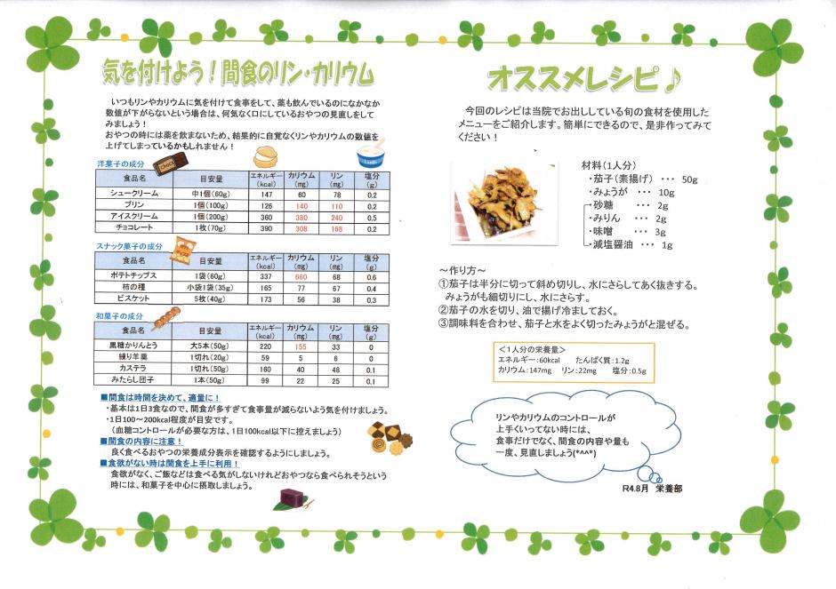 R4.8月 気を付けよう!間食のリン・カリウム