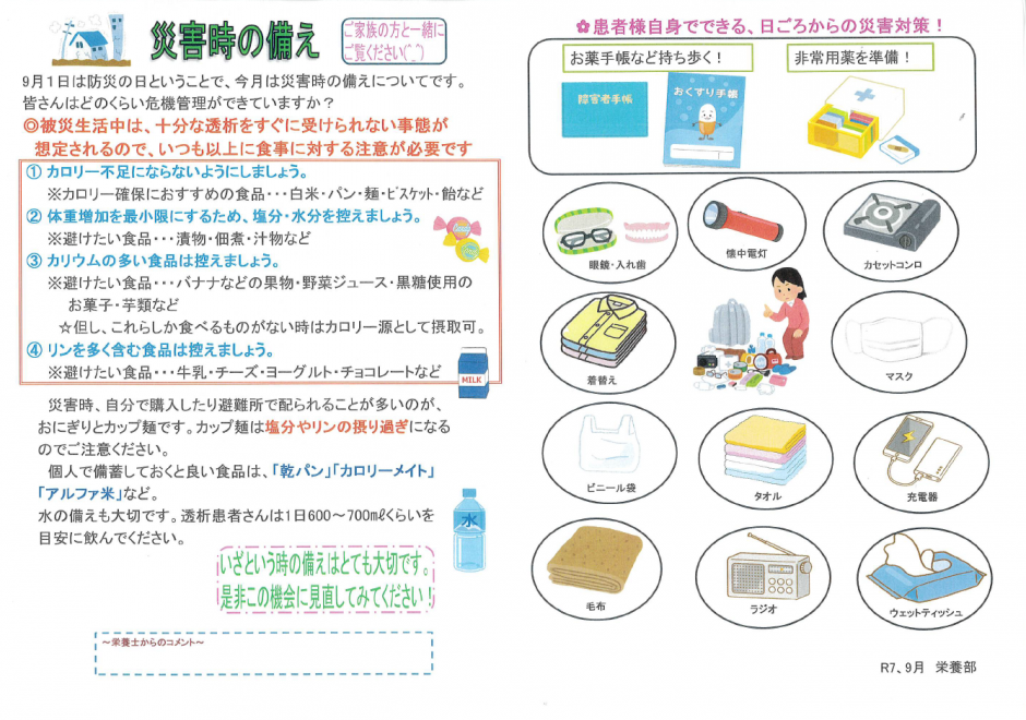 R7.9月 秋の食材&災害時の備え