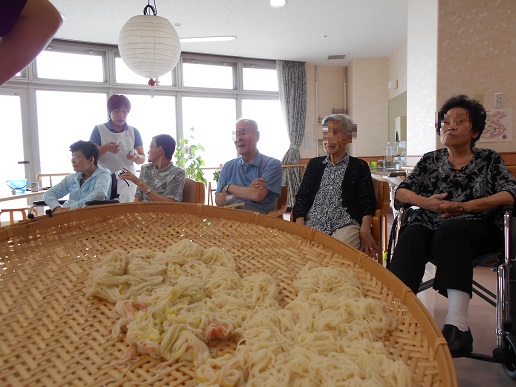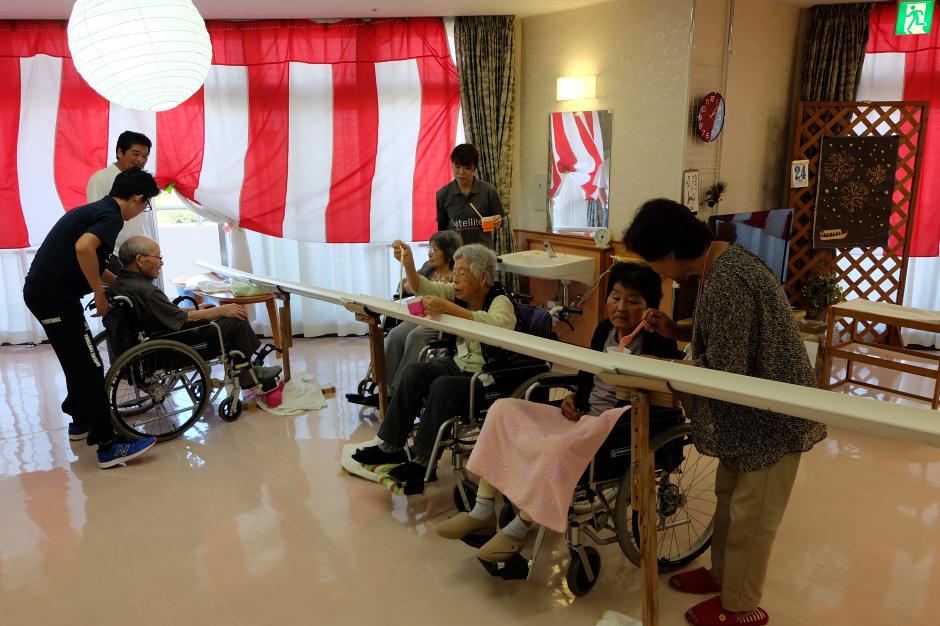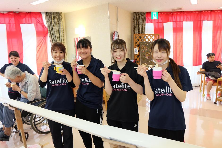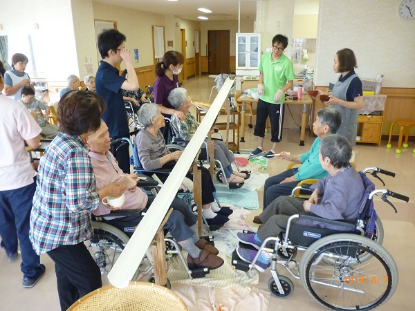 さくら館サテライトでは8月7日に〝流しそうめん″を行いました。