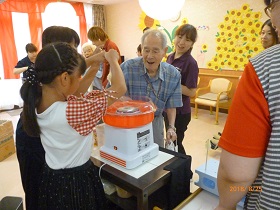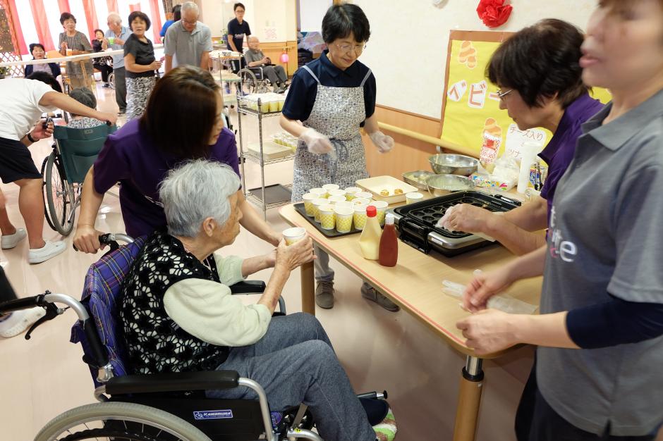 会場では流しそうめんやアイスクリーム、綿あめの他、今年の新メニューのたこ焼き風ホットケーキなどを味わって頂きました。