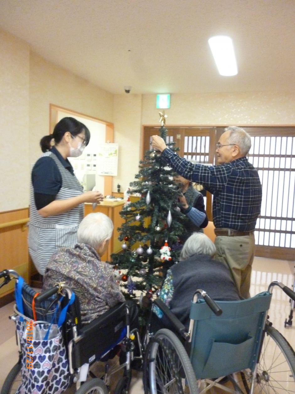 12月と言えばクリスマス、さくら館では利用者様とクリスマスツリーの準備が始まりました
