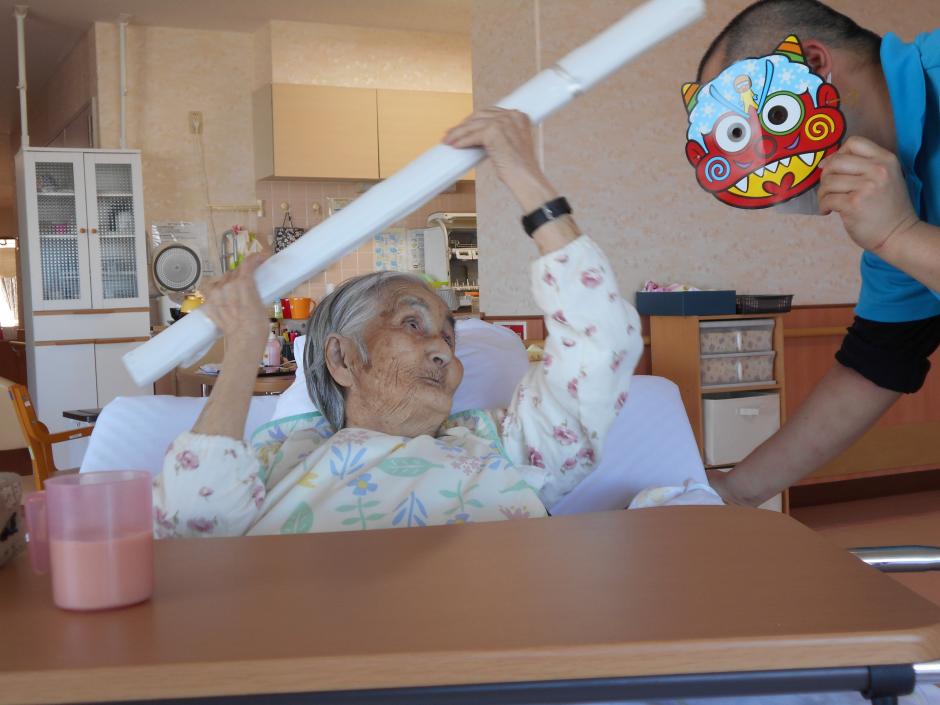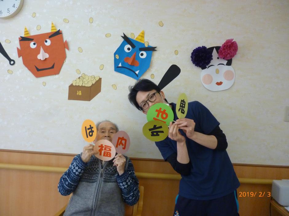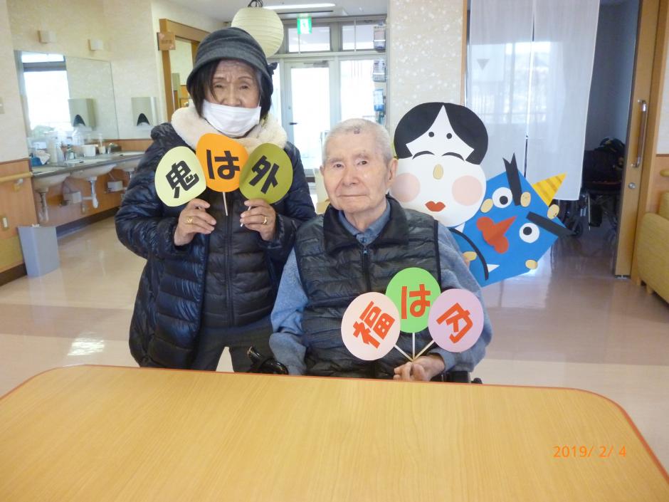 食べ物には不思議なパワーがあり、さらに豆が魔物の目「魔目(まめ)」にも通じるとのことで、私達もご利用者様、職員の健康を願い、福を呼び込みました。