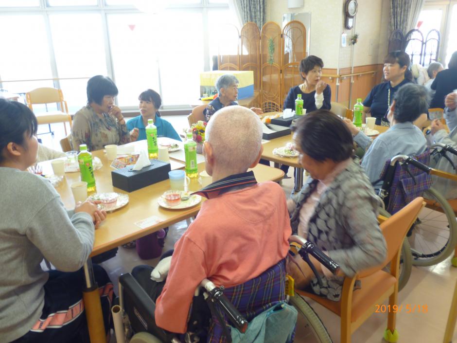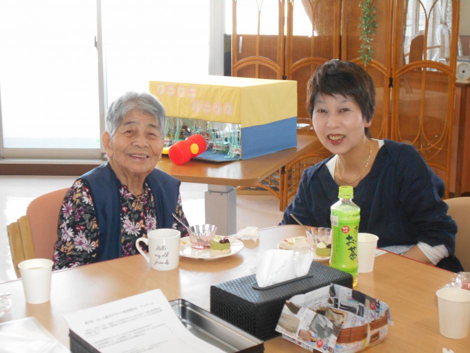施設長の挨拶に始まり、職員手作りの「ワニワニパニック」で利用者様並びにご家族様とともに楽しい時間を共にし、その後、お茶とケーキを囲みながら意見交換会の時間へと移りました。