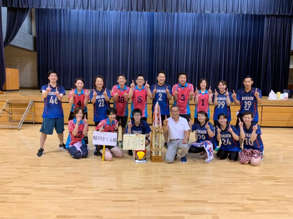 今年の大会は、5チームでの総当たり戦となり、とてもハードな内容です。初戦、昨年優勝の強豪「山水苑」さんに接戦の末勝利すると、そのまま勢いに乗って、なななんと!優勝することができました(^_^)v