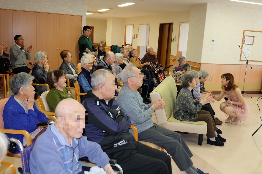 かわいい歌や踊りを披露してくださり、利用者様はもちろん、職員にも癒しの時間となりました。
