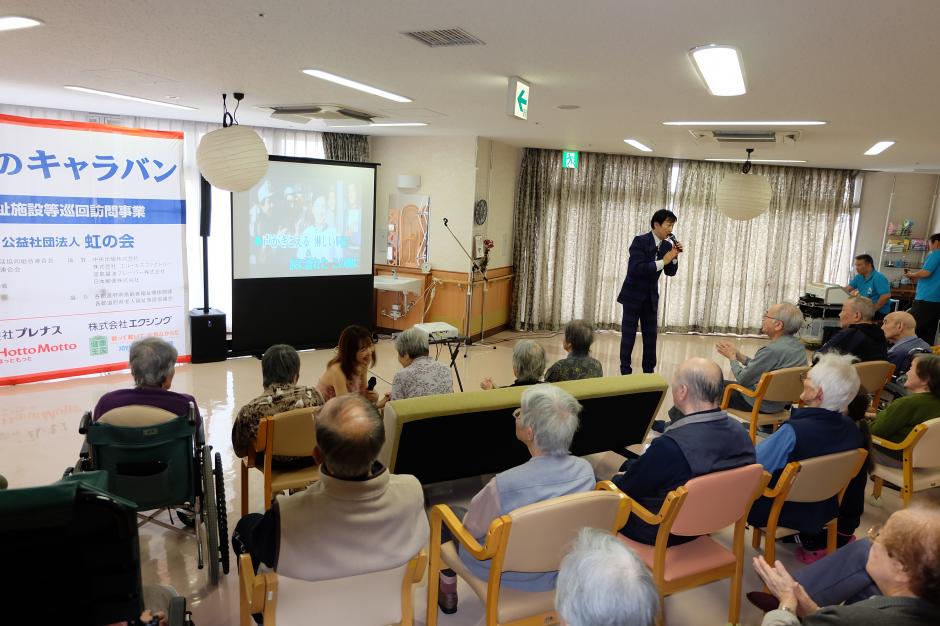 公益社団法人 虹の会 様により、「虹のキャラバン」が行う生の歌謡ショーを届けていただきました。