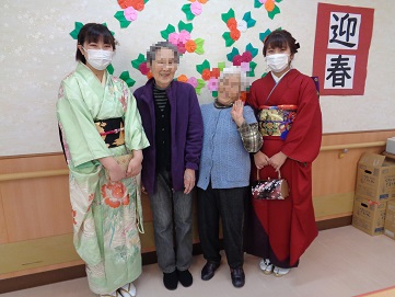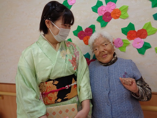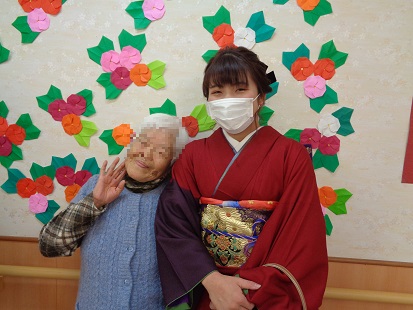 さくら館サテライトでも2名の職員が晴れて成人を迎え、華やかな姿で訪問してくれました。